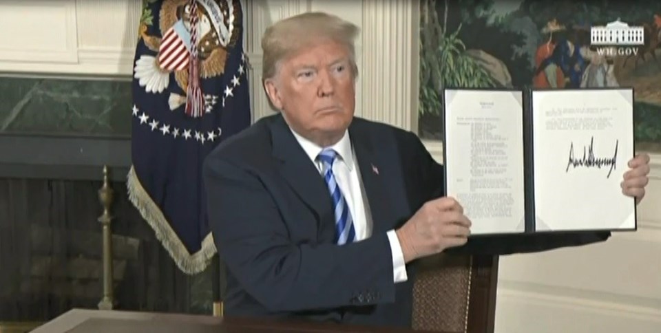 ABD Başkanı Trump, 10 dakika süren konuşmasının ardından 2015 yılında askıya alınan İran yaptırımlarının yeniden uygulanmasının önünü açan başkanlık kararnamesini imzaladı.