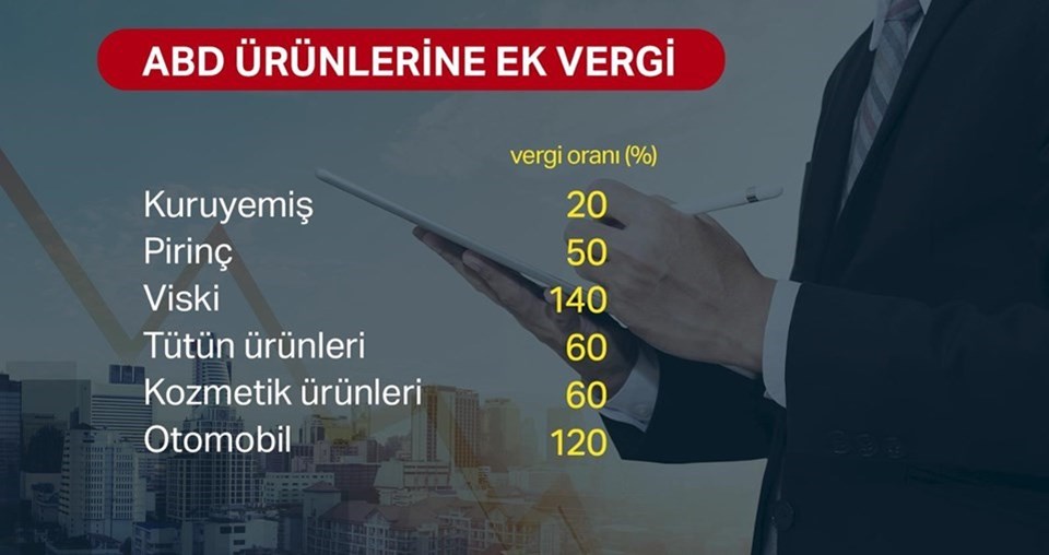 ABD menşeli bazı ürünlerin ithalatında ek mali yükümlülük uygulanan oranlar yüzde 100 artırılmıştı.