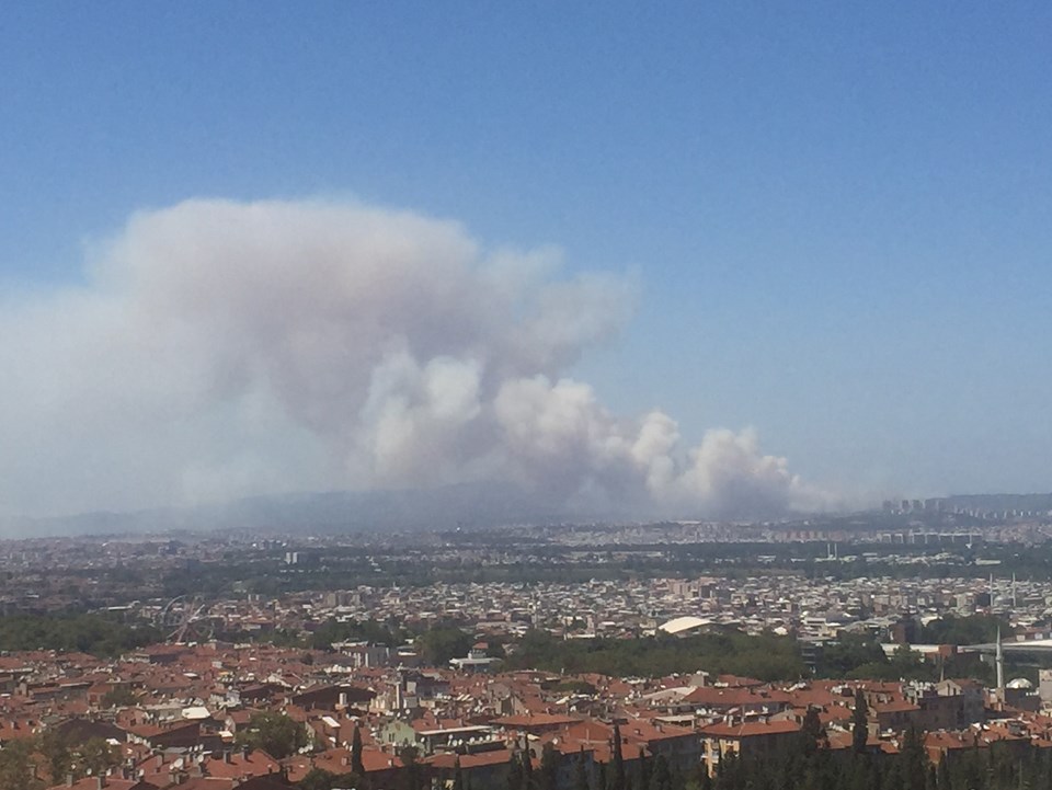 Öte yandan yangın nedeniyle oluşan duman, kent merkezi olmak üzere şehrin birçok yerinden de görülüyor.