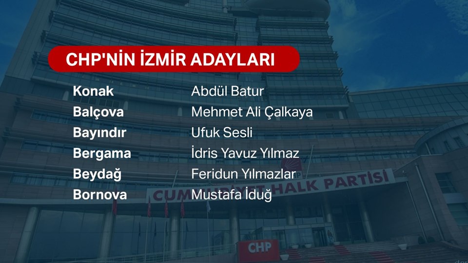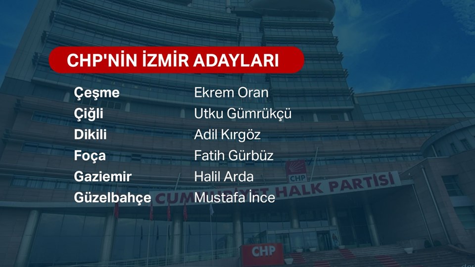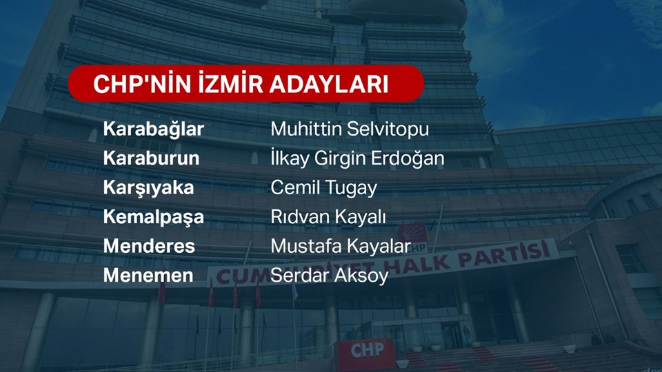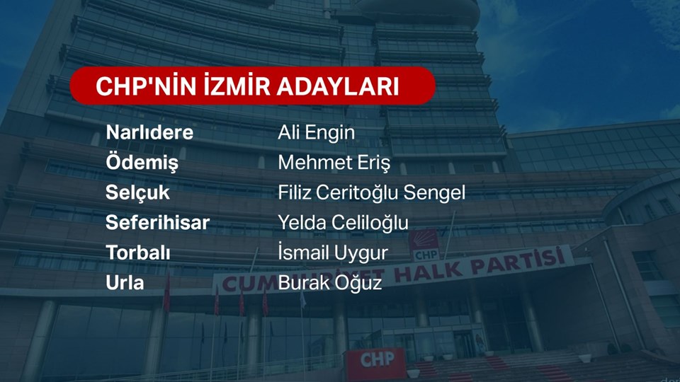 CHP'nin İzmir adayları şu şekilde: