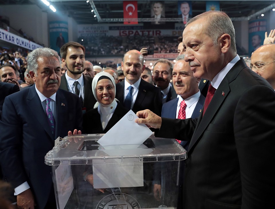 Genel Başkanlığa tek aday olarak gösterilen Erdoğan, oyunu 1 No'lu sandıkta kullandı. Partililerin tezahüratları eşliğinde oyunu kullanan Erdoğan, daha sonra salondakileri selamladı.