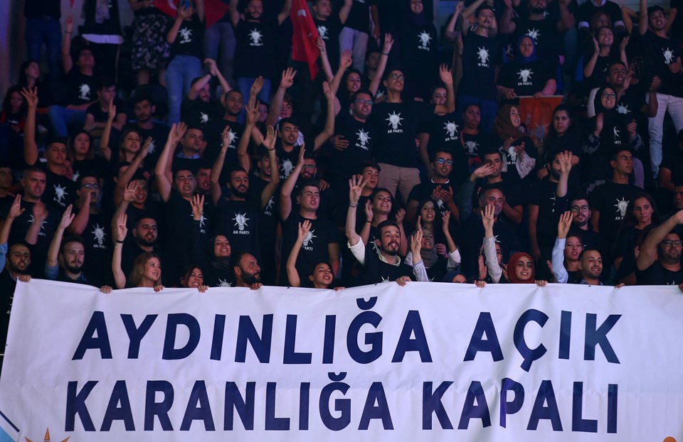 Öte yandan, siyah zemin üzerinde fosforlu AK Parti logosunun yer aldığı tişörtler giyen partililer, görsel bir şölen oluşturdu.