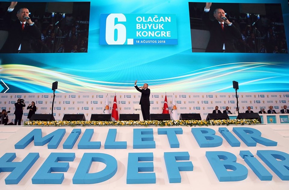 AK Parti'nin 6. Olağan Büyük Kongresi Ankara'da yapıldı. Yeni sistemin ilk kongresinin sloganı; "Millet Bir, Hedef Bir'' oldu. Kongrede tek aday olan Cumhurbaşkanı Erdoğan, 1380 oyla 6. kez AK Parti Genel Başkanlığı'na seçildi.