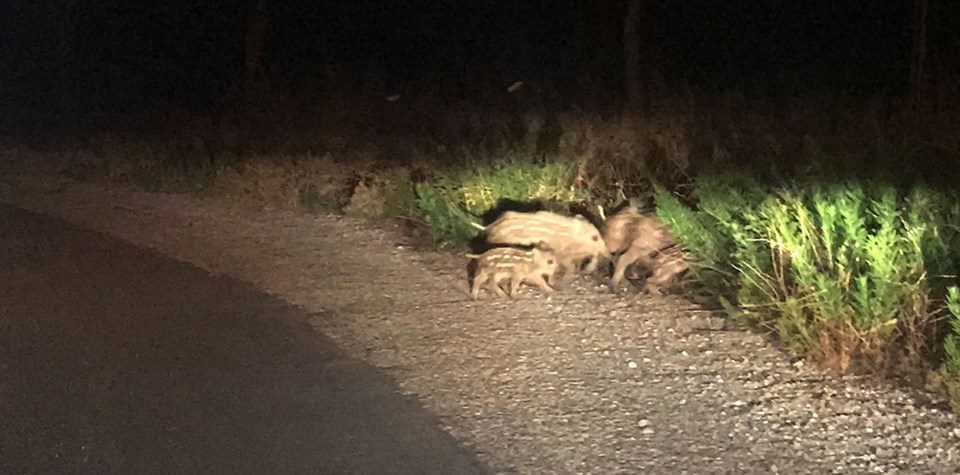 Karayolunun karşısına geçmeye çalışan domuzlara sürücülerin durup yol vermesi ise ilginç görüntüler oluşturdu.